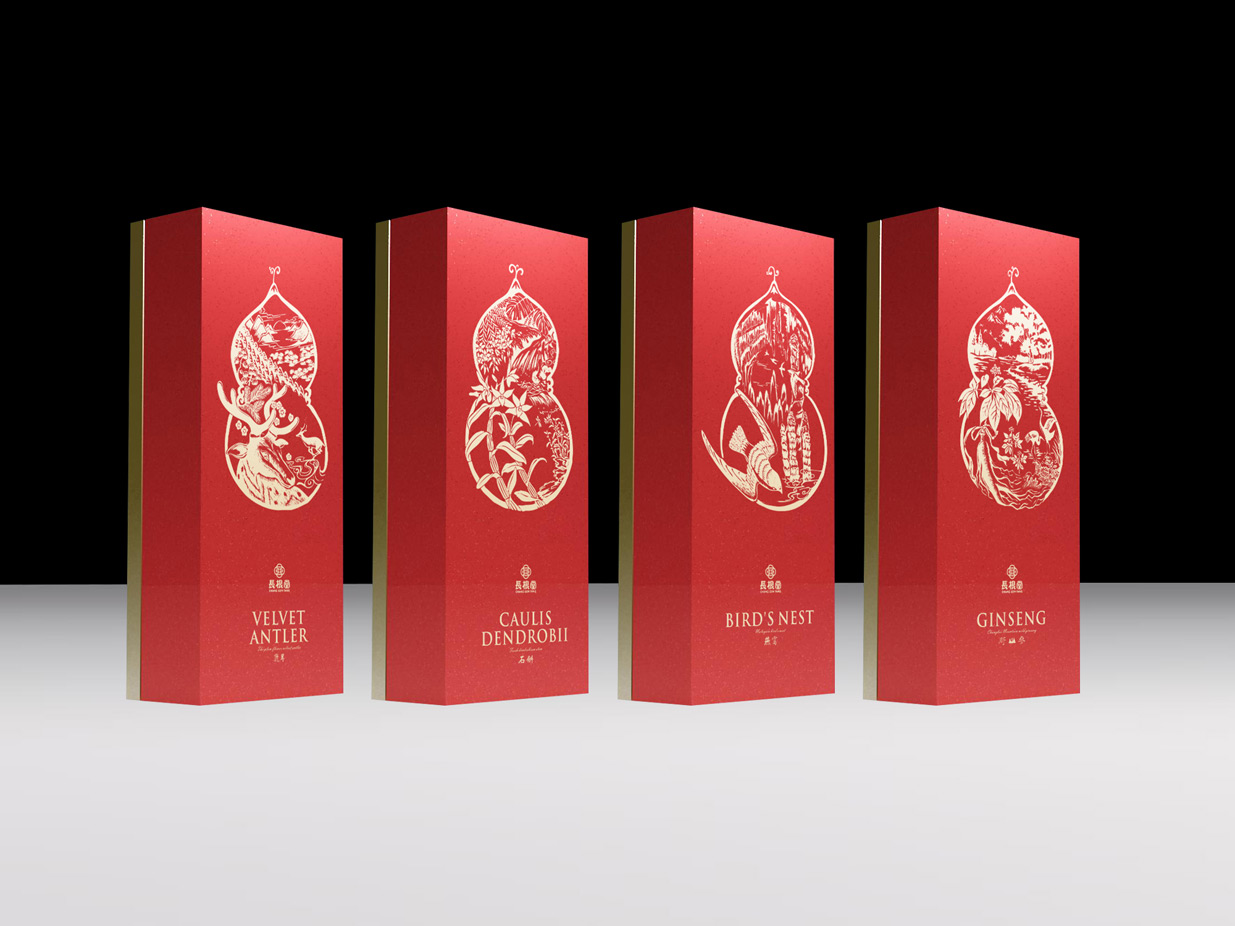 傳統中醫認為藥分“君、臣、佐、使”,參茸類多集聚天地精華,謂之“君”,中草藥講究產地的正統,以中醫“懸壺濟世”之理念,結合產地山水萬物,呈現出參茸禮盒的精美華貴,讓老中醫進入新時代。
