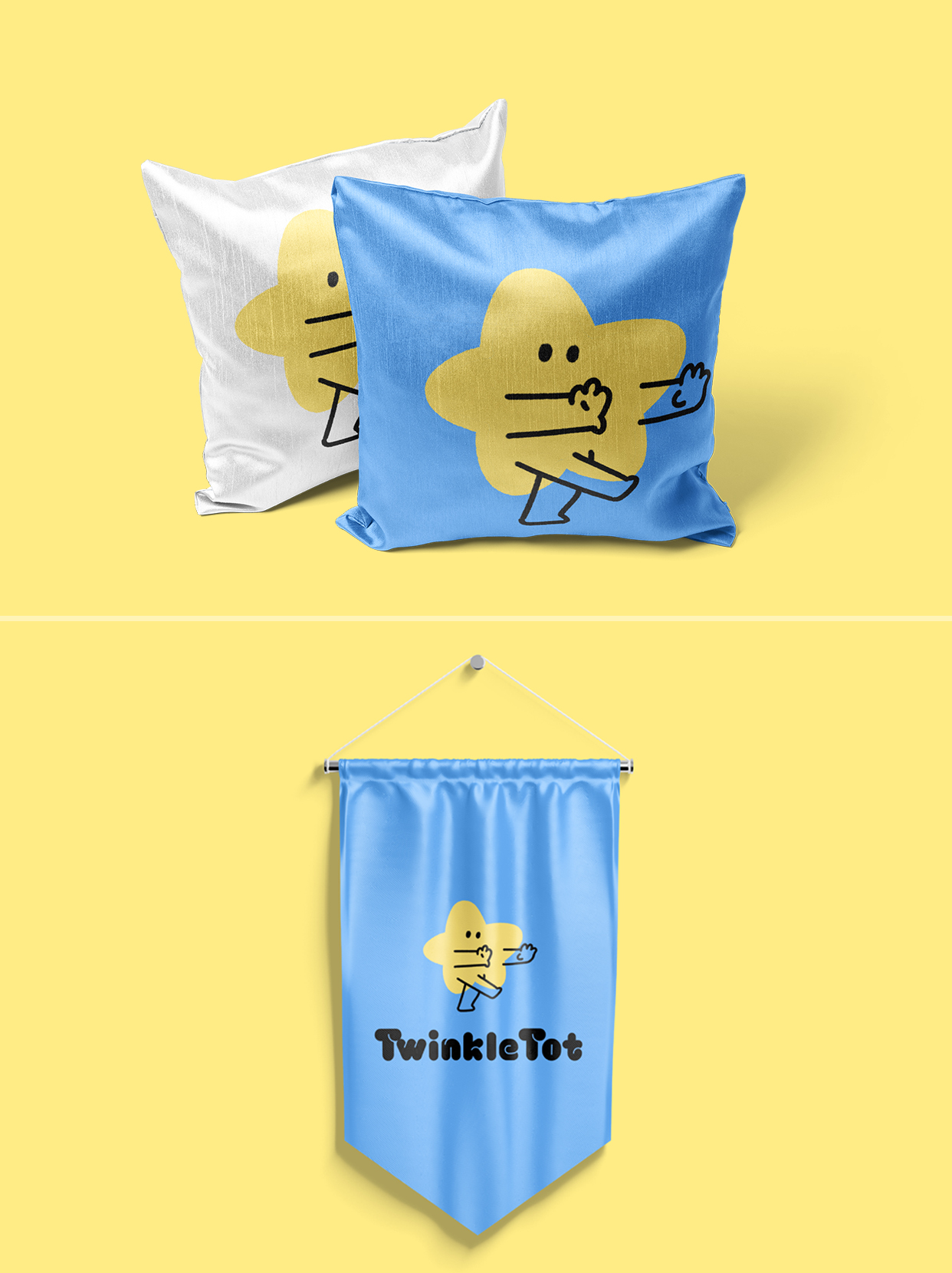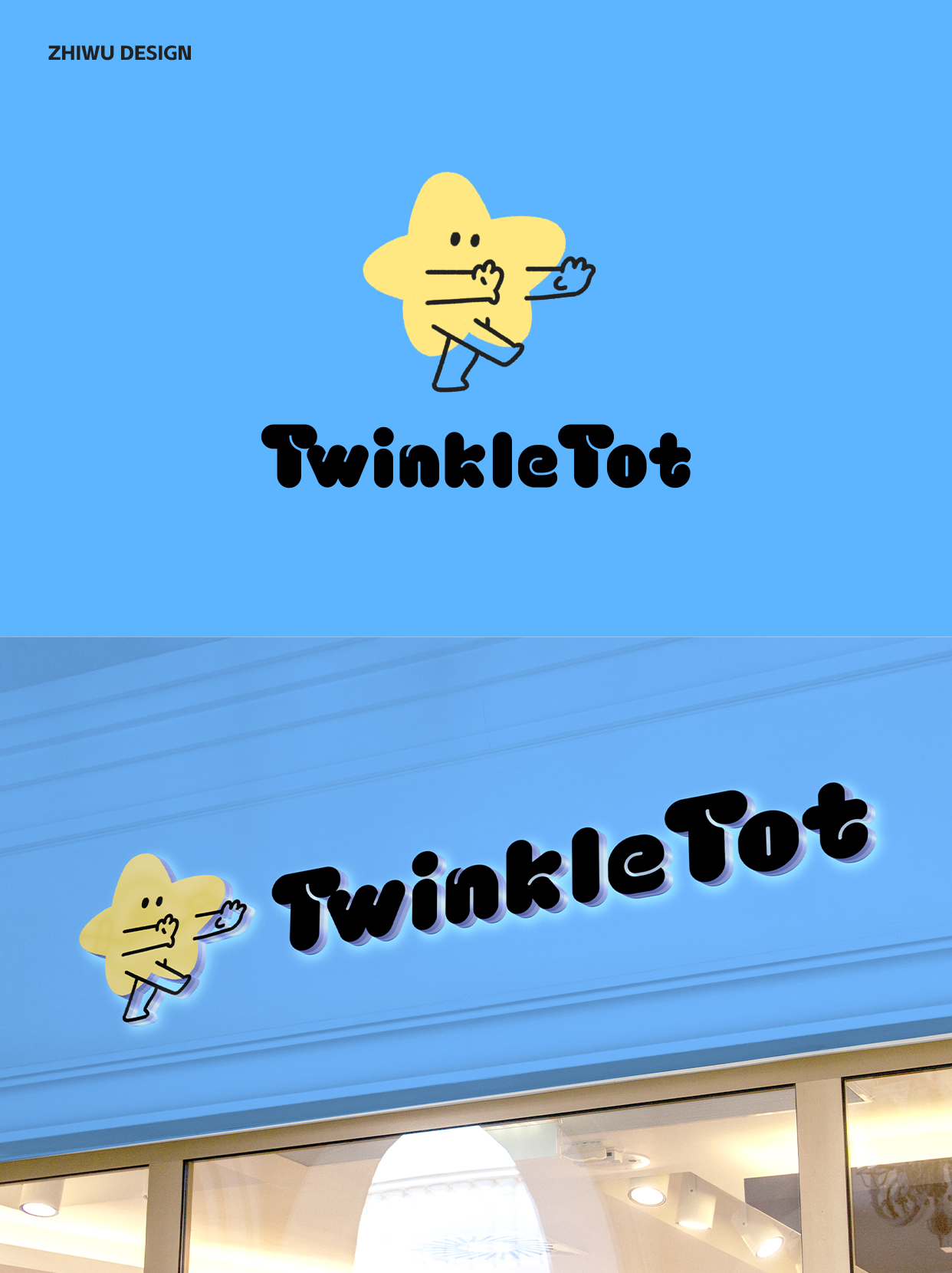 LOGO設計:擬人化小星星,圓潤線條+嬰兒學習走路搖晃的動態(tài),像探索世界的好奇寶寶 。治愈配色:陽光奶油黃+靜謐淺空藍。