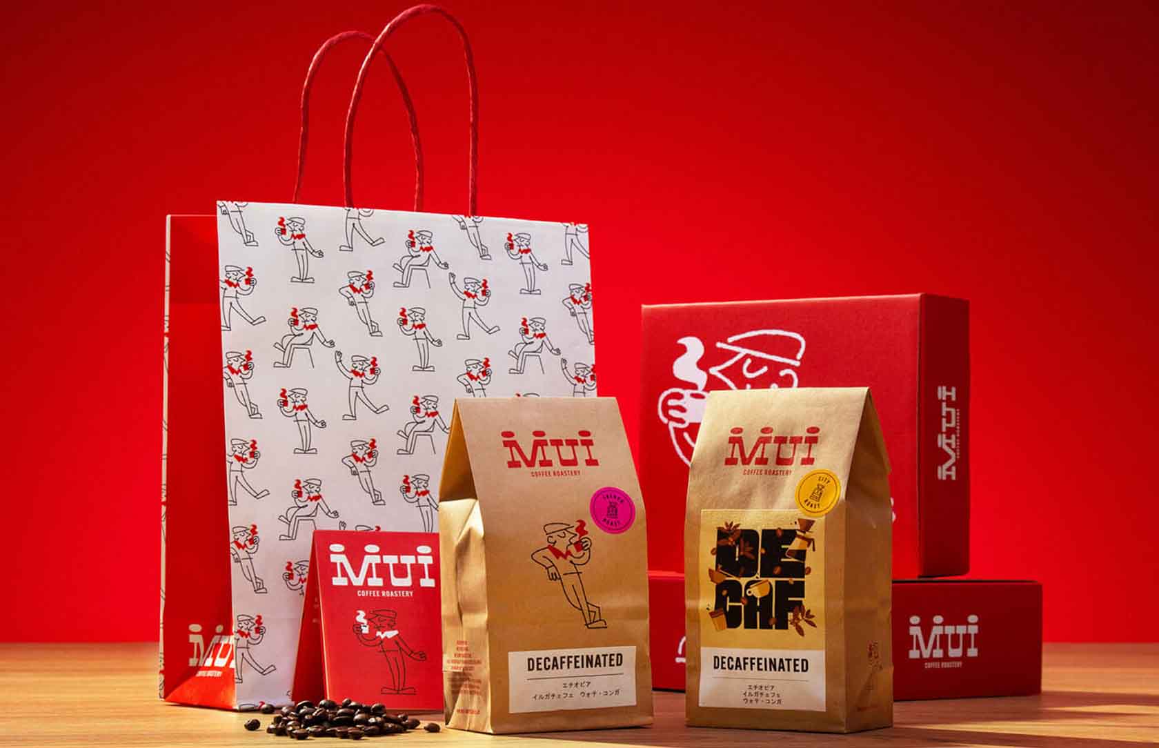 日本的咖啡烘焙店MUI,在意大利工作室的協(xié)助下,以一種融合意大利和日本文化的新穎形象呈現(xiàn)給顧客,這種設(shè)計(jì)靈感來源于1960年代的意大利電視節(jié)目“Carosello”。這個(gè)節(jié)目以其獨(dú)特的真人表演、木偶和動(dòng)畫吉祥物而聞名,與日本對(duì)卡通人物的熱愛相結(jié)合,為MUI的品牌形象帶來了獨(dú)特而難忘的轉(zhuǎn)變。 MUI的新外觀以醒目的紅色為主色調(diào),每個(gè)咖啡品種的包裝上都有定制的插圖,凸顯其原產(chǎn)地特色。這種設(shè)計(jì)不僅體現(xiàn)了意大利懷舊風(fēng)格,也展現(xiàn)了日本對(duì)古怪人物的熱愛,使得MUI的品牌形象更加生動(dòng)和具有辨識(shí)度。