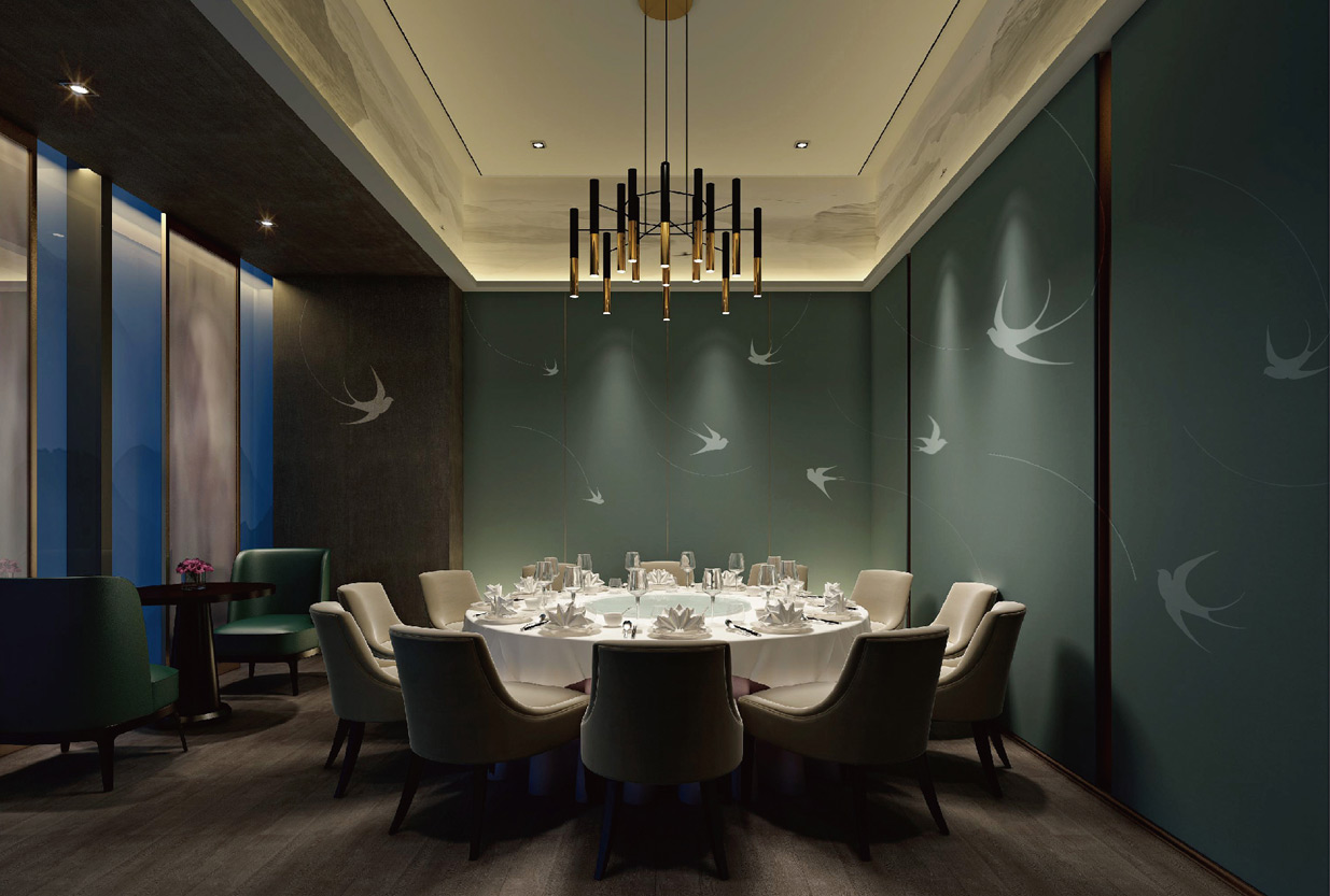 Introduction:作為一家高端餐廳,主打有機食材,因此,我們在設計中以春燕為原型進行設計,表達一種天然的、富有生機的概念,如沐春風般自然清新。